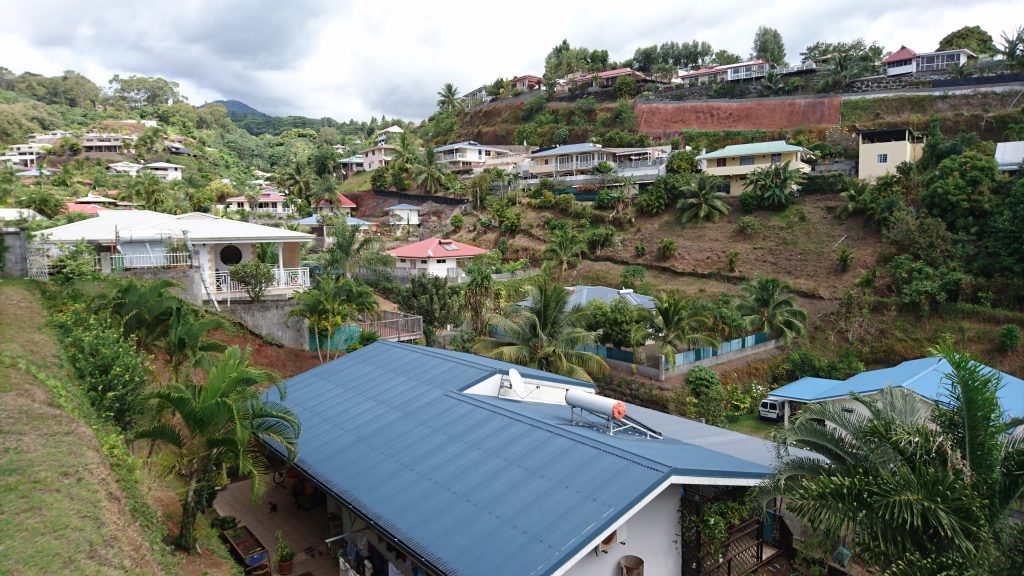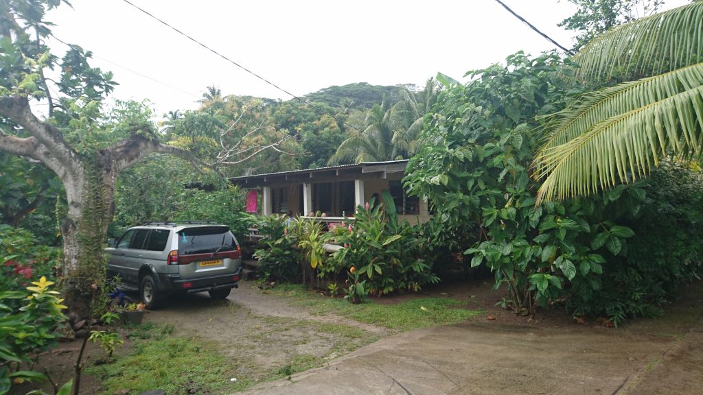 Ich bedankte mich bei Gilles dafür, dass er mir einen langersehnten Traum erfüllt hatte (wir sind auch weiterhin in Kontakt) und Armelle setzte mich am Sandstrand ab (wir sind auch noch in Kontakt 😛 ). Wir fragten ein paar Badegäste, ob sie wüssten wo die Familie Matanoa wohne und erfuhren was von „peka wänwiet“. Was bitte? Armelle erklärte mir…Die Straße habe Kilometersteine, am Kilometer 28 (PK 28) solle das Haus sein. Etwa 5 km von hier. Perfekt! Als nächstes quatschte sie ein Auto für mich an, ein junges französisches Honeymoonpaar, und sie erklärten sich bereit mich die paar Meter mitzunehmen. So kam ich völlig unglamurös im Haus von Leonie an, wo mein Vater schon ungeduldig auf mich wartete und mir erklärte er sei mehrfach mit dem Auto am Kai gewesen, zig mal am Ufer vorbeigefahren und sogar in den 30 km entfernten Hauptort gefahren, weil auch er nicht wusste, wo ich war. Mensch, wie hat man es nur früher, im prämobilen Zeitalter, geschafft sich im Vorfeld erfolgreich in einem fremden Ort zu einer entfernten Zeit zu verabreden? Menno, das war ne schwere Geburt!