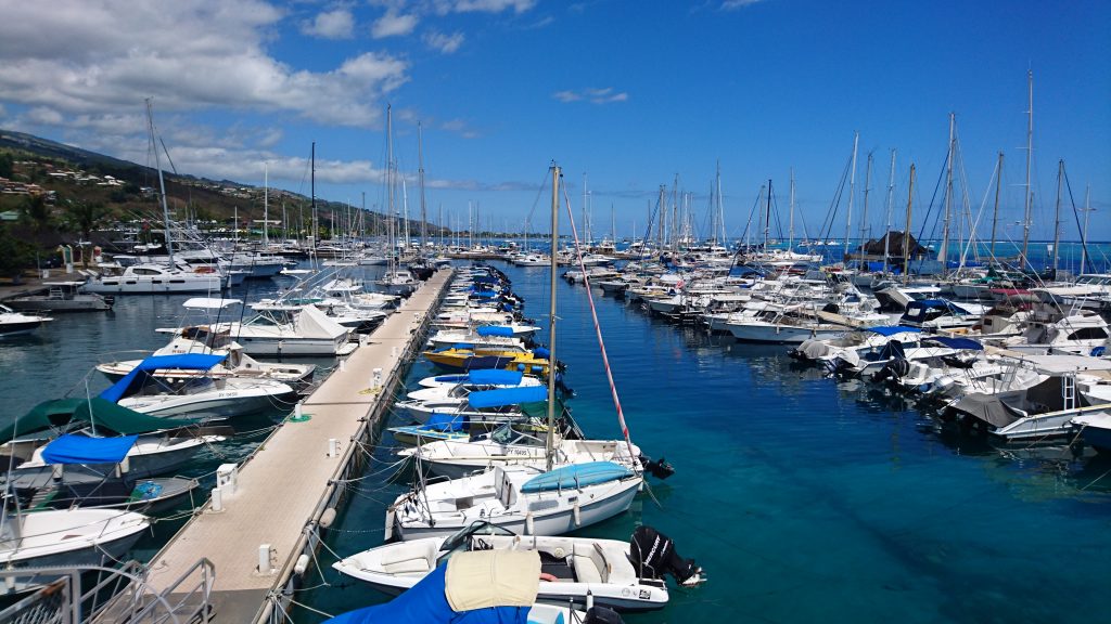 Ich bin inzwischen in der Marina Taina, die Größte, und schaute mich um. Ein weites Gelände, alles weitgehend öffentlich, ein paar Restaurants, ein kleiner Bootsbaumarkt, das Büro, ein Waschsalon. Auch hier ist das Personal eher kühl. Sie mögen es wohl nicht, wenn niederes Volk ihre elitäre Kundschaft anpöbelt. Aber beinahe alle Segler, die ich anschließend so kennenlerne, sind unfassbar nett und hilfsbereit. Ich spreche jeden an, der mir über den Weg läuft, frage erst auf Englisch, ob sie English sprechen. Meinen französischen Eröffnungssatz perfektioniere ich über die nächsten 20-30 Ansprechpartner. „Guten Tag, ich suche ein Boot nach Raiatea, kennen Sie jemanden der dorthin fährt?“ Ich höre zum ersten Mal den Begriff „Dingy-Dock“, dort wird mir der größte Erfolg versprochen – und in der Kneipe zur Happy Hour, grins. Wat für Dinger?! Achso! Dinghis sind also die kleinen Motorschlauchboote, mit denen meine Opfer von ihren Segelbooten, die vor der Marina an den Bojen parken, an Land fahren! Am Dinghi-Dock muss ich also unschuldig dreinblickend auf sie lauern.