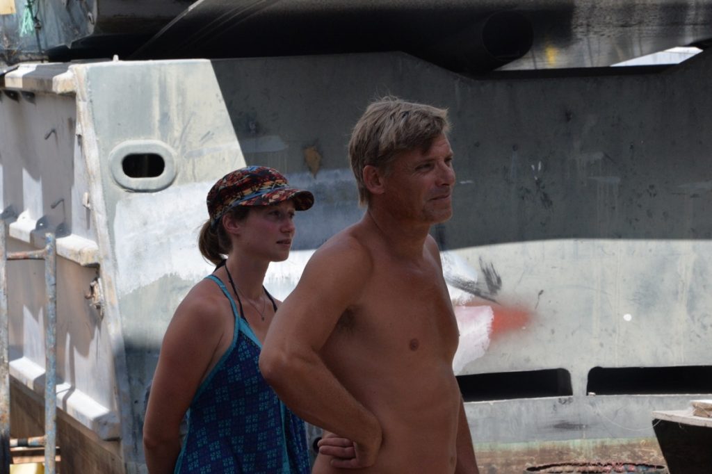 Danach löste sich die Gruppe langsam auf, als nach und nach die Leute abreisten. Die Freunde meines Vaters nutzten die Zeit, um fröhliches Inselhopping zu betreiben, die Osterhasis reisten zurück zur Osterinsel. An meinem Geburtstag waren wir nur noch zu dritt. Leonie, Dietmar und ich. Dietmar ist, wie auch die anderen Freunde meines Vaters, ein fester Bestandteil meiner Kindheitserinnerungen und es war spannend ihn jetzt ein zweites Mal kennen zu lernen. Ich kann mich bis heute daran erinnern, wie ich als vielleicht 8-Jährige bei ihm zuhause zum ersten Mal Freddy Mercury hörte und völlig geflasht von dieser irren Stimme war und wie ich in seinen Fotografien blätterte. Er sah damals schon genauso aus wie jetzt und wirkt auf mich noch genauso lustig und unkompliziert, wie ich ihn als Kind wahrgenommen habe. Vielleicht nehme ich zurück, dass ich ihn ein zweites Mal kennengelernt habe. Umgekehrt war der Veränderungsgrad wohl krasser. Auf jeden Fall sollte er die nächsten Tage mein Onkel und treuer Begleiter für alle Schandtaten und Abenteuer werden. Er vertrat meinen Dad an meinem Geburtstag, den wir auf meiner Luftmatratze auf einem Cargofrachter nach Papeete verbrachten, ging mit mir in die Jugendherberge, machte mit mir Ausflüge um die Insel und eine Wanderung und spendierte mir fast jede Mahlzeit, da mein polynesisches Geld nach drei Hostelnächten inzwischen aufgebraucht war. Wenn mich meine Wanderschaft dann irgendwann nach Ittlingen führt, ist meine Wiedergutmachliste bei ihm lang. Wenn wir irgendwo unterwegs waren, stellte ich ihn der Einfachheit halber eigentlich immer als meinen Onkel vor und so machten wir uns gemeinsam auf die Suche nach einem Boot nach Neuseeland – und für ihn (wenn möglich) auf die Marquesas.