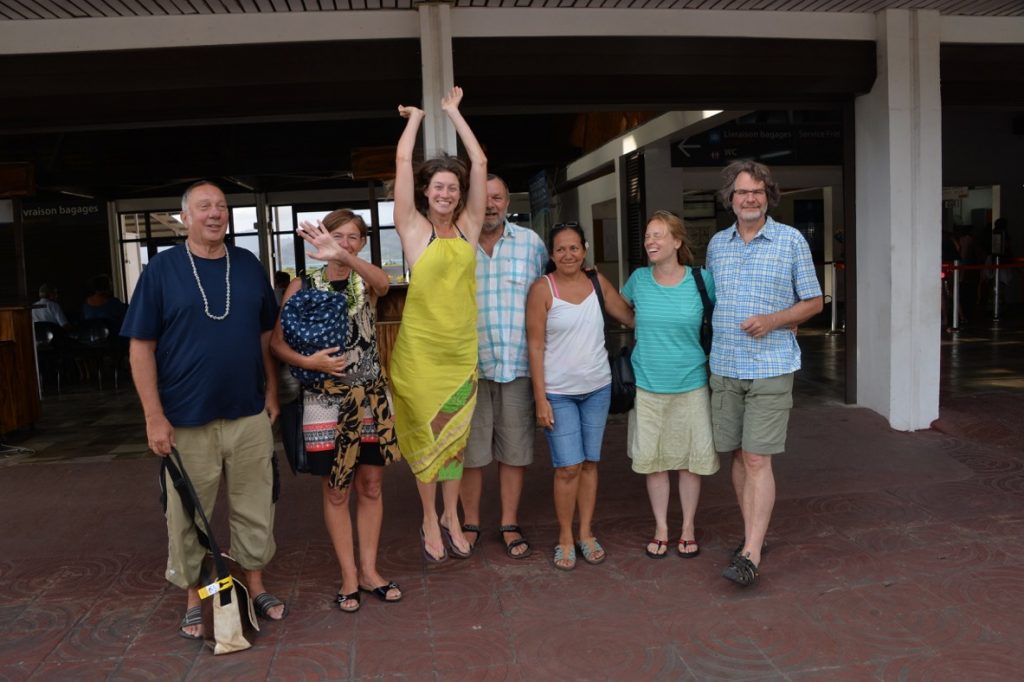 Unsere „Reisegruppe“ kommt im Morgengrauen in Papeete, der Hauptstadt von Französisch Polynesien, an. Am Flughafen bekomme ich noch nicht einmal einen Stempel im Pass es ist Europäische Union, wie langweilig. Aber auch irgendwie komisch. Man ist am anderen Ende der Welt und dennoch im Nachbarland. Alle sprechen Französisch und ich freue mich wie ein Flitzebogen darauf mein Französisch in den nächsten Wochen aufzupolieren. Die „Osterhasis“ sind mal wieder mit Coolboxen verreist und jeder ‘nem Gepäckstück zuviel, Mann ist das wieder peinlich! Als ob‘s in Tahiti kein Essen gäbe.Während der Rest der Gruppe auf den Anschlussflug nach Raiatea wartet, warte ich auf Noëline, Leonies Schwester, bei der ich für ein paar Nächte unterkomme. Ich möchte nicht schon wieder fliegen und will versuchen per Segelboot nach Raiatea, 200 km nordwestlich von Tahiti, zu kommen. Ich gebe die Segelei doch nicht auf, nur weil in Chile niemand segelt, hier sind sicher mehr Boote unterwegs. Alle anderen denken sich wohl, die Arme, die denkt tatsächlich sie kann mit dem Segelboot kommen. Die verstehen eh nicht so recht, was ich hier mache…