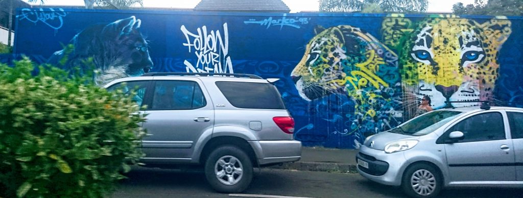 Ich nehme in meinen Erinnerungen aus Tahiti mit: die Invasion der Natur, die umnebelten Berggipfel, den Duft der Blumen in einer Explosion aus Farben, das Lächeln der Menschen und ihre molligen, Zimtbraunen Knuddelkörper, das reichhaltige Essen, Streetart und die Farben des Meeres.