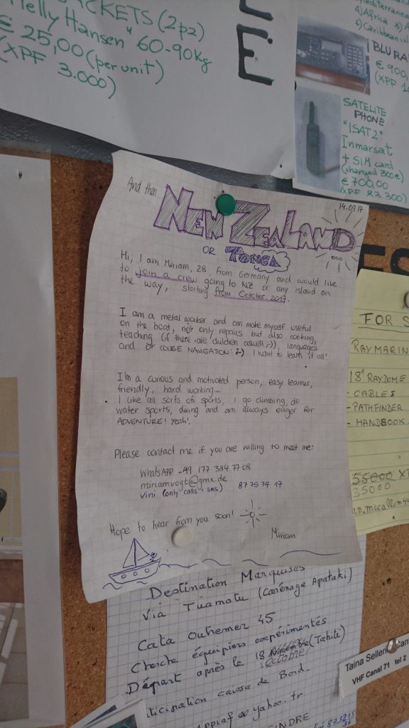 Ich fand noch mindestens drei andere Boote, die nach Neuseeland unterwegs waren, aber sie waren schon voll. Määp. Manchmal habe ich mein Crewticket nach Neuseeland nur um einen Tag verpasst. Es hat nicht sollen sein. Aber ich bin ja inzwischen fest überzeugt: es hat alles seinen Sinn.