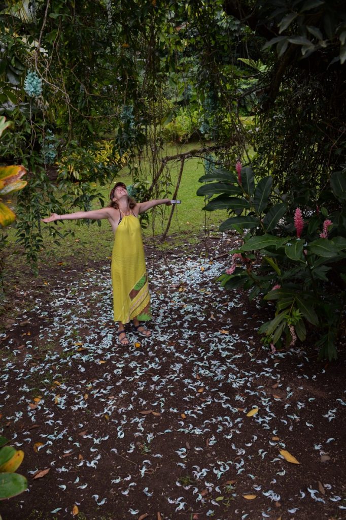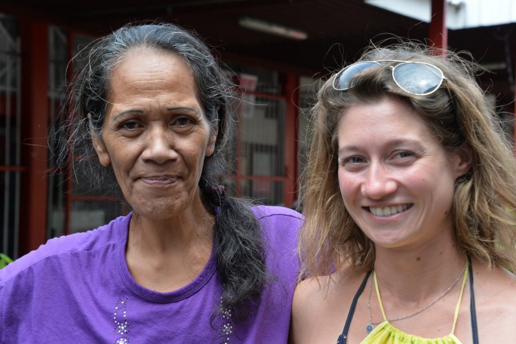 Meine ersten Tage in Französisch Polynesien sind die reine Sinnesüberflutung. So viele Bäume, Ranken, Blüten, Gerüche, Farben! Es ist heiß, so heiß, dass ich zwischen 13-16 h am liebsten unter der Dusche eine Siesta machen möchte.Ich wohne bei Noëline, ihrer zehnjährigen Tochter Nora und ihrer Nichte Heinarii, die eine Ausbildung zur Krankenschwester macht. Sie haben ein großes Haus, vier Hunde, darunter Babulé, ein knutschiger Welpe. Die Hunde sind den ganzen Tag angeleint, weil sie nicht erzogen wurden und daher den ganzen Tag Unfug machen. Irgendwie ist das doch paradox.