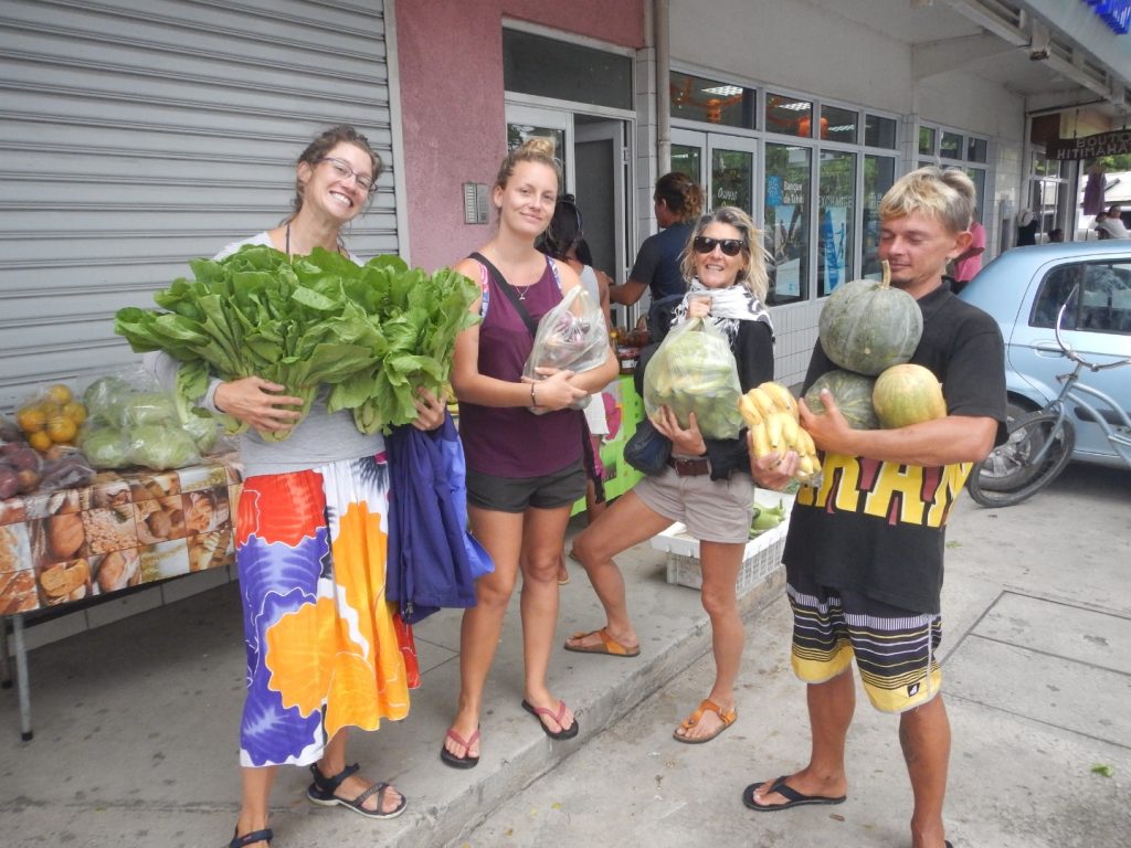Eigentlich sollten wir heute schon auf dem Weg zum Suwarrow Atoll auf den Cook Islands sein. Der Wind wäre dafür perfekt. Aber Paolo und Adrien gehen zum Gendarmeriebüro, um den Ausreiseprozess einzuleiten und zu erfahren, dass wir noch ein paar Tage warten müssen, weil die endgültige Genehmigung aus Papeete angefordert werden muss. Steinzeitlich. An Flughäfen geht sowas doch immer in Sekunden. Wir gehen einkaufen, Ersatzteile für den Motor kaufen und Adrien geht mit dem Dinghi Diesel holen. An der Anzahl der Fahrten sehen wir, dass wir etwa 400 l Diesel im Meer verloren haben. Es ist aus den Belüftungslöchern gelaufen, die für den Druckausgleich der Tanks zuständig sind. An diesem Tag holen wir etwa 800 l Diesel! Von wegen SEGELboot.