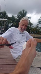 Unser Kapitän frühstückt morgens vor dem Gipfel Bora Boras