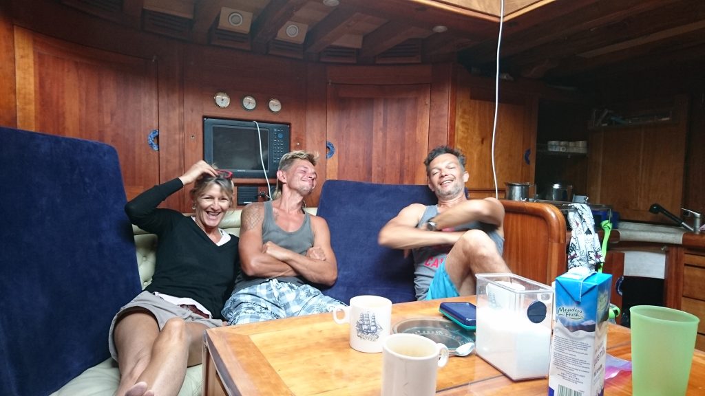 Tag 4 – der Intercooler vom Motor ist völlig hinüber, da ist ein gigantischer Riss drin. Wieder wird die Abfahrt um einen Tag verschoben. Ein neues Crewmitglied kommt an: die 51-jährige Gio aus Italien. Wir sind somit jetzt schon eine Person mehr als es Kojen gibt.
