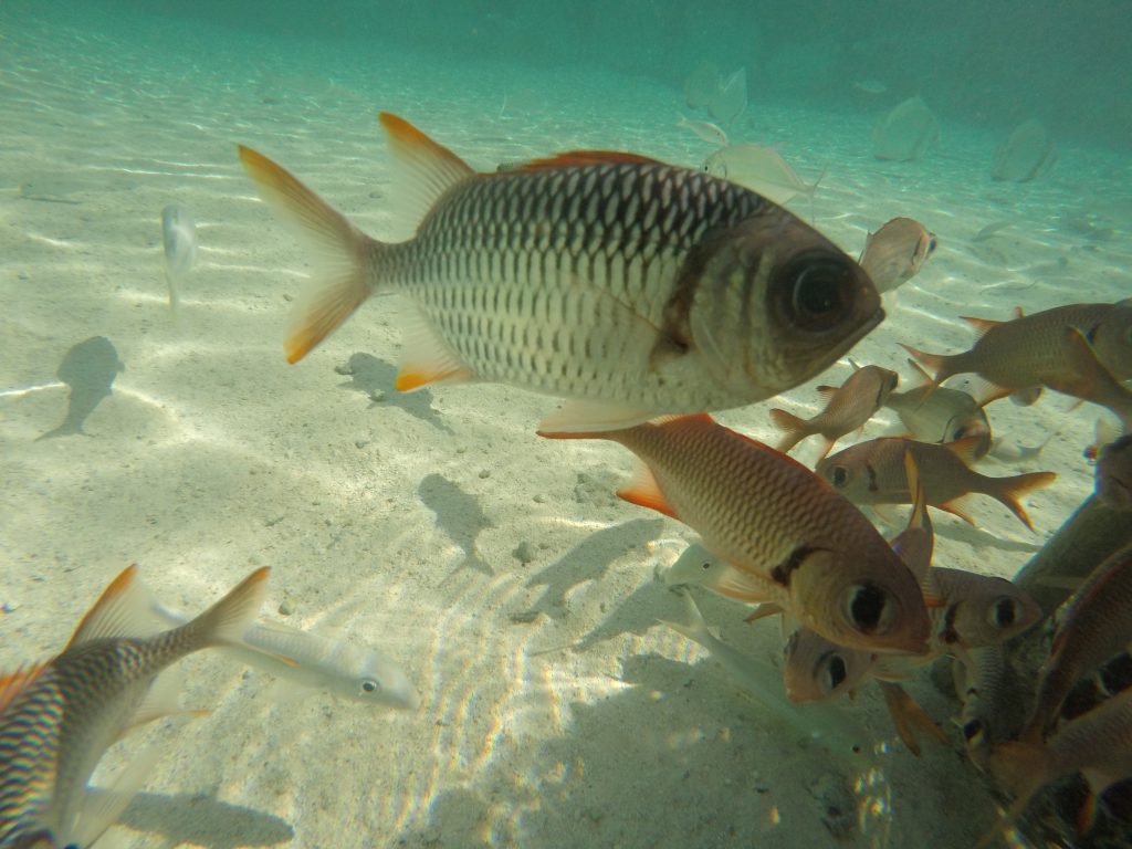 Wir wachen in der paradiesischen Bucht auf und besteigen den 372m hohen Gipfel Te Uru Fa’atú. Die Farben des Meeres sind der Knüller. Und die Mangobäume am Wegesrand. Auf dem Rückweg machen wir Stopp beim Rathaus, um uns aus Französisch Polynesien abzumelden und weiter zu den Cook Islands zu segeln. Hier erfahren wir aber, dass wir hier keine Ausreisegenehmigung für FP bekommen, da die entsprechenden Autoritäten fehlen und wir somit zurück nach Bora müssen. Da wir erst am nächsten Morgen unser (hoffentlich?) letztes Crewmitglied Petya hier auf Maupiti erwarten, müssen wir mit Verzögerungen von bis zu drei Tagen rechnen. Shit. Paolo ist fuchsteufelswild und schiebt alles auf die Unfähigkeit der Behörden, statt seine eigene Unfähigkeit als Kapitän zuzugeben. Es ist seine Aufgabe sich um solche Dinge vorab zu informieren. Aber wir machen das Beste aus unserer Zeit und machen eine Schnorcheltour mit der Passströmung. Viel weniger Fisch und Unterwasserleben, als ich dachte.