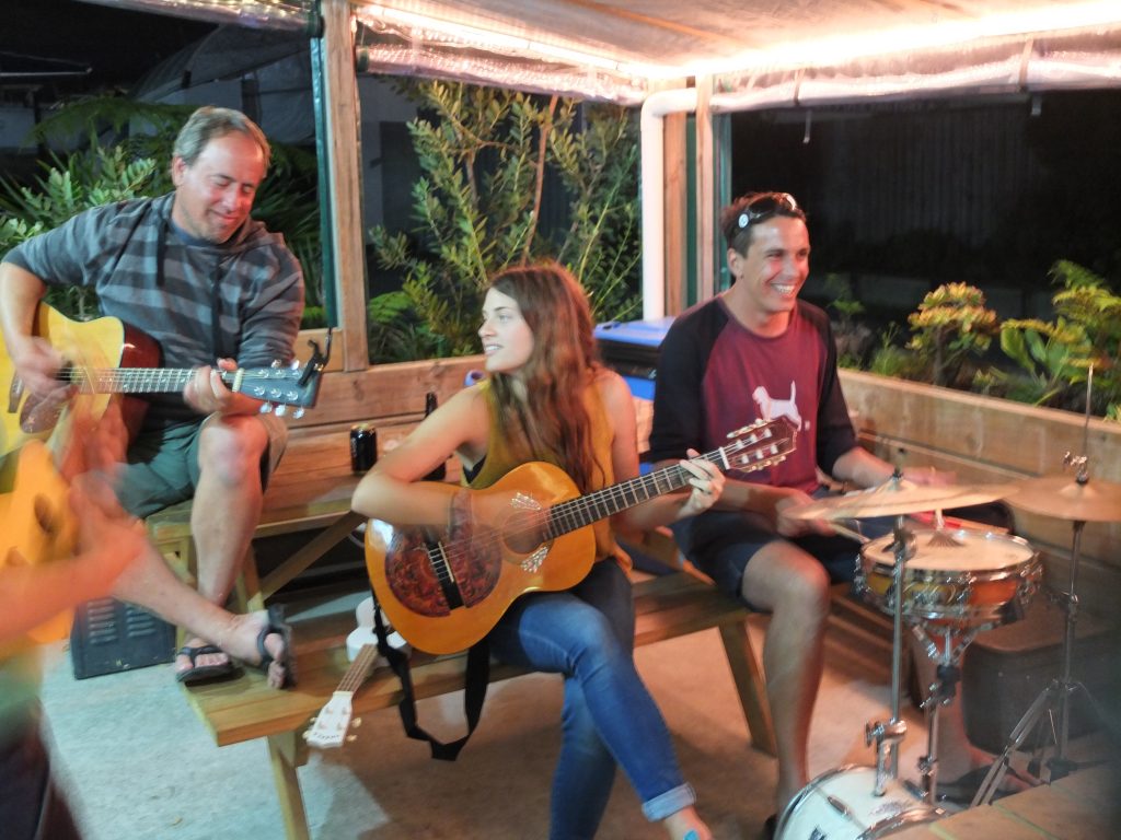 Die Abende auf der Werft sind sehr gesellig und feucht fröhlich, nicht selten wird mit allem musiziert, was zur Verfügung steht.