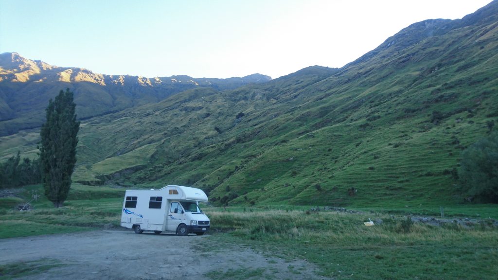 Ende Februar endlich der Moment, wo ich das Land ein wenig erkunden kann; mit meiner Mutter und Thomas (Sie werden erstmal mit 400 Neuseelanddollar dafür bestraft, dass noch ein Apfel im Gepäck ist) fahren wir mit einem Wohnmobil von der Nordinsel zur Südinsel und teilen drei Wochen lang Campingplätze mit den zahlreichen anderen Campern oder die wilden Plätze mit den Sandfliegen. Manchmal mit beiden. Klapptisch und Klappstuhl raus, dämliche Hüte aufgesetzt und überaus interessiert die Nachbarschaft inspiziert und gelästert. Peinlich. Ich wollte als Kind immer mit einem Wohnwagen in den Urlaub, was meine Eltern stets wegen dieser „dämlichen Wohnwagenkultur“ ablehnten – nun waren wir selbst Teil davon. Und wie fand ich es? Naja, teilweise dämlich 😉