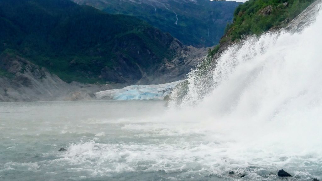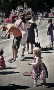 Juneau ist Alaskas Hauptstadt – nicht Anchorage, wie ich immer dachte. Bemerkenswert ist, dass man nur mit dem Boot oder dem Flugzeug hierher kommt. Hier in dieser nicht weiter bemerkenswerten Stadt kommen wir in den Genuss einer Independence Day Parade. Ich wollte unbedingt hin um zu sehen, ob die in Europa vorherrschenden Vorurteile über den Patriotismus der Amis zu diesem Anlass tatsächlich stimmten. Die Parade war klein und „brav“. Es war überwiegend ein Familienevent mit Bratwurstbuden der Freiwilligen Feuerwehr am Straßenrand, Verkleidungen für die Kinder und vllt. 50 Schmuckwagen, die Bonbons warfen, wovon etwa die Hälfte von Politikern stammte, die für ihre Lokal-Kandidatur warben. Nichts von all der pompösen Vaterlandsliebe, die ich erwartet hatte.