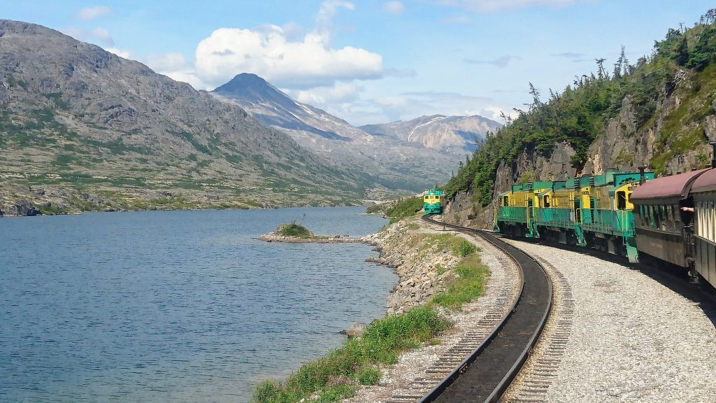 Wieder vergingen qualvolle Tage in denen er wenig bis gar keine Andeutung bekam, ob und wann und wohin er geschickt werden würde. Seine Anspannung ließ er nach wie vor an uns und Anne aus. Da beschloss er eine kleine Reise zu machen, damit ihm nicht die Decke auf den Kopf falle und wir fuhren Richtung Norden nach Skagway. Das ist eine kleine Goldgräberstadt in der Nähe der Kanadischen Grenze. Dort wollte Larry eine Fahrt mit einer alten Goldminen-Bahn unternehmen. Wir schlossen uns der Fahrt an, die extrem touristisch war (für die Kreuzfahrttouris), aber ich genoss es trotzdem. Außerdem war ich auf diesem Weg für 15 min in Kanada. Check! Wir blieben zwei Nächte in Skagway und fuhren dann über Haines und Petersburg zurück nach Juneau. Petersburg entpuppte sich als hübsches Örtchen. Von Norwegischen Einwanderen erbaut, wurde es schnell zur Fischerzentrale der Region. Es war kein Anlaufpunkt für die Kreuzfahrtschiffe und somit beruhigend bodenständig.