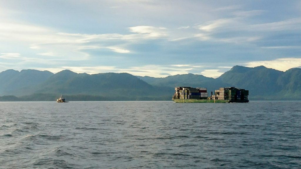 Die meisten Berge in dieser Gegend sind mit wenigen Ausnahmen nicht höher als ein paar Hundert Meter. Das Wasser ist ruhig, manchmal spiegelglatt wie ein See, denn wir fahren durch die Passagen und nicht übers offene Meer. Fast überall hängen die Wolken so tief, dass sie als Schleier durch die Bergspitzen ziehen. Beinahe jede Stunde sieht man Wale. Buckelwale und Orcas. Im Radio hieß es vor ein paar Tagen, dass eine Fähre einen Wal überfahren hat. Eine traurige Geschichte. Wir halten also Ausschau nach Walen und auch nach Treibholz, das die Propeller beschädigen kann.