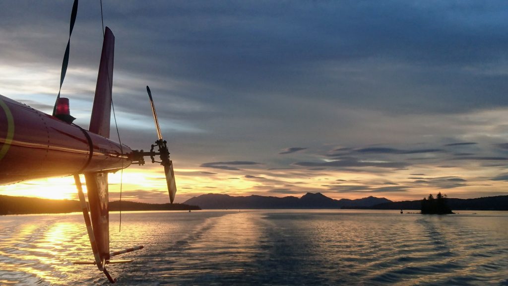 In Sitka trudeln wir in den letzten hellen Stunden ein und ankern in der Nähe vom Flughafen. Am nächsten Morgen wird Josh uns wieder verlassen, er wird für einen anderen Job abgezogen und erst wieder kommen, wenn wir den Vertrag bekommen. Also wieder zu dritt. Na toll.