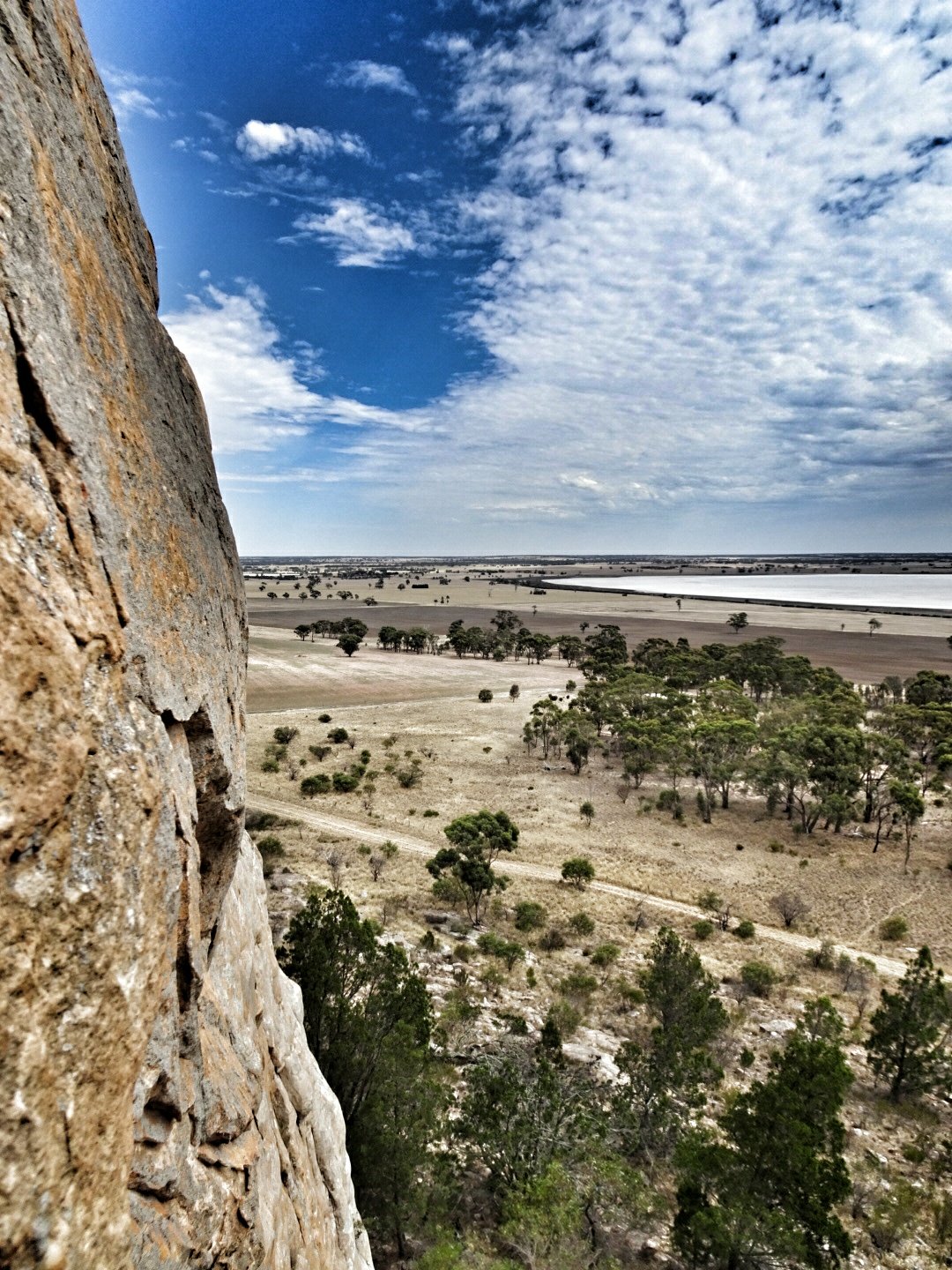 Ich habe es einzig Emily aus Euroa zu verdanken, dass ich in Arapiles bin. Sie hat zwar mit Sport und Bewegung nichts am Hut aber irgendwie dachte sie sich dieser Ort wäre was für mich. Volltreffer! Ein 20 minütiger Dokufilm über die ländlichen Dorfgemeinschaften Australiens jenseits der ausgetreten Touristenpfade brachte mich auf eine neue Mission: ich muss in Natimuk einen „Climber-Farmer“ finden. Seit den 60ern zieht der Berg in dessen Umfeld bis dato nur Farmer lebten, die wenig für den Berg übrig hatten, die Kletterer an. Über die Jahrzehnte hinweg stellten die Kletterer immer ein wunderliches Volk dar, das so gar nicht in das Weltbild der Farmer passte. Sie waren schräge Vögel mit eigenartigem Modegeschmack. Sie waren arbeitslos, seltsam gekleidet, oft wochenlang ungeduscht und richteten sich über Monate am Stück am Fuße des Berges häuslich ein und machten nix anderes, als zu klettern. So was! Die Farmer und die Kletterer vermischten sich angeblich kaum. Das kann doch nicht sein, denke ich mir, es gibt doch mit Sicherheit einen Farmer der klettert, oder einen Kletterer der hier eine Farm hat. Den muss ich finden! Zunächst wollte ich 10-14 Tage hier bleiben. Am Ende wurden es vier Wochen. Und ich habe tatsächlich Farmer-Climber kennen gelernt. Juhee, es gibt sie!