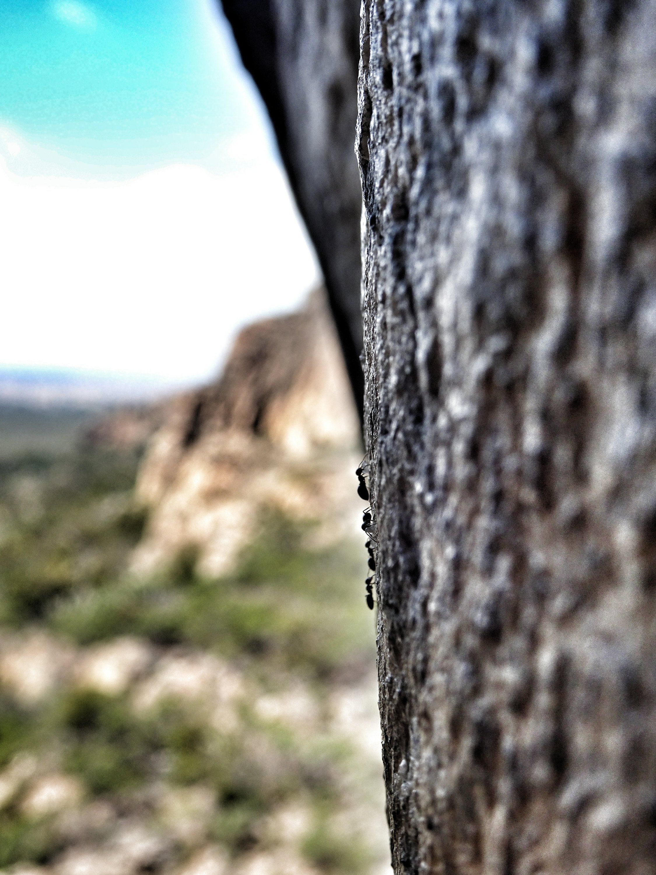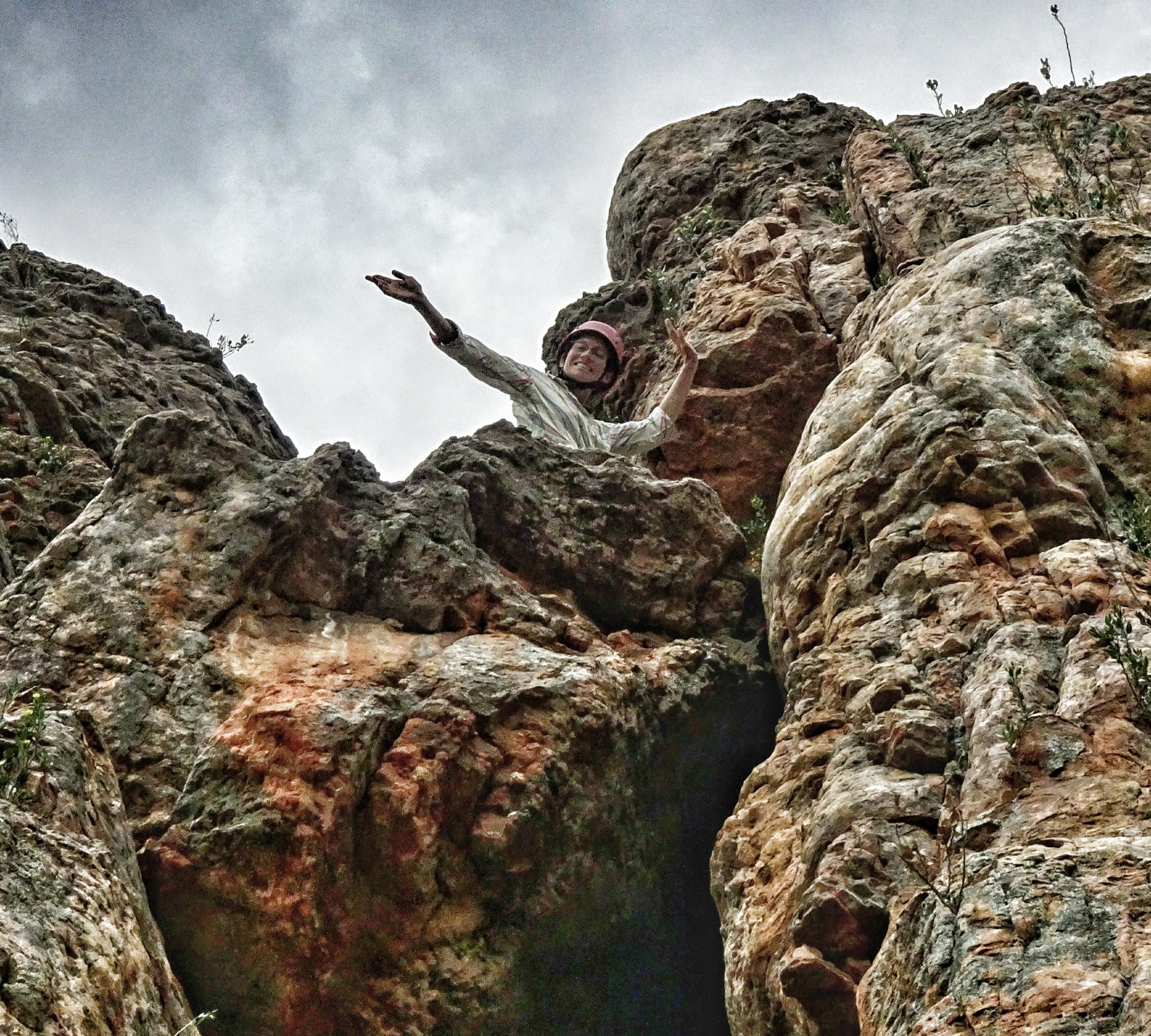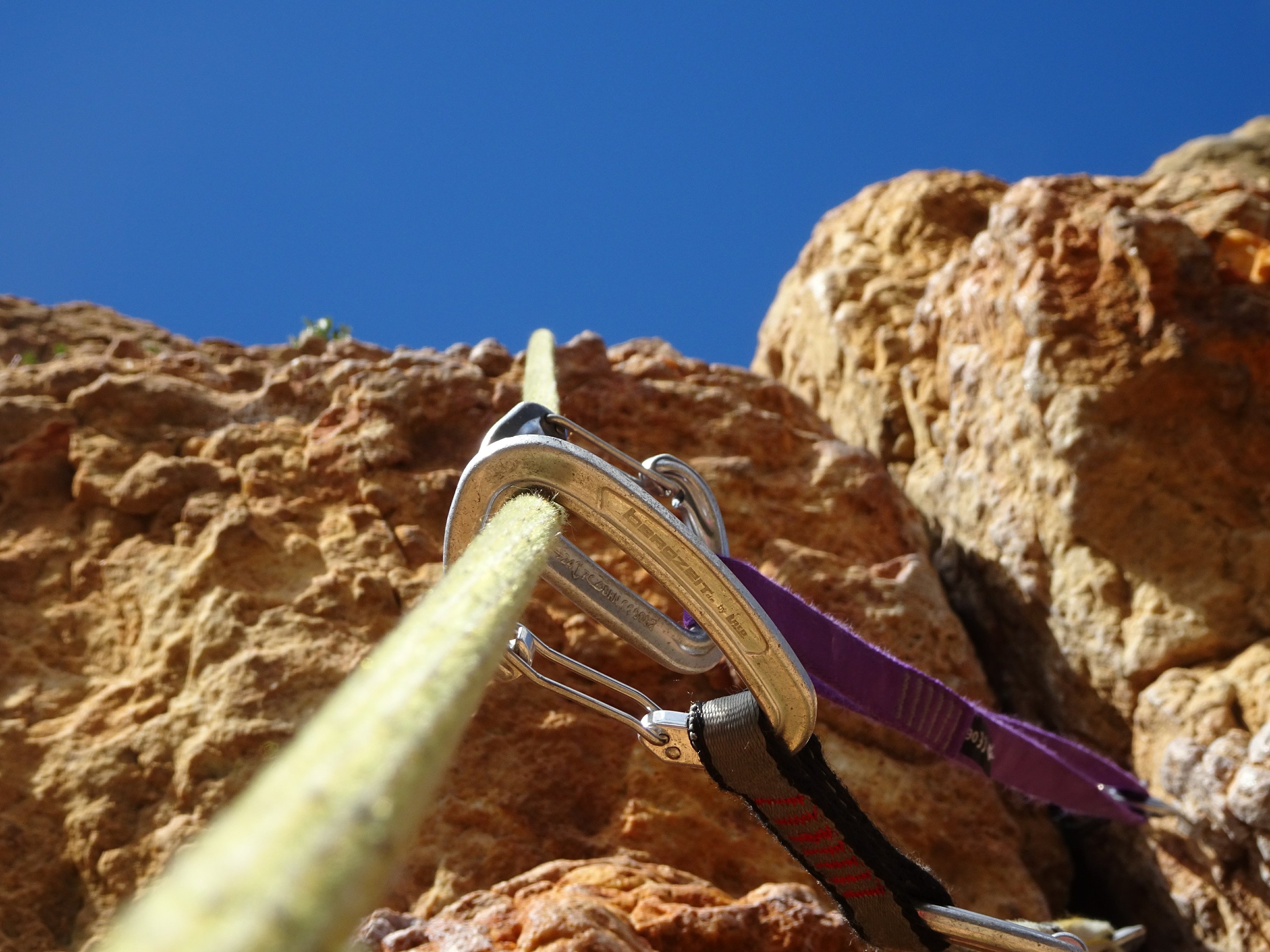 Manchmal muss man im großen Bogen herunter wandern, meistens muss man jedoch nur ein paar Meter gehen, um an zwei Ketten oder Bolzen zu gelangen an denen man sich abseilt. Das Seil wird durchgefädelt, beide Enden heruntergeworfen, man hängt sich ein und seilt sich nacheinander ab. Unten zieht man an einem Ende des Seils und holt das komplette Seil wieder herunter. Drei Stunden später ist die Route also endlich beendet. Hätte man das nicht auch schneller gekonnt? Menno. Trad Climbing erfordert handwerkliches Geschick, Kraft und Ausdauer, Können, ein gutes Auge und Einschätzungsvermögen, Verantwortungsbewusstsein, innere Ruhe und jede Menge mentale Kontrolle. Wie oft klammerte ich mich in den nächsten Wochen winselnd an den Berg und fragte mich warum zum Teufel man sich sowas freiwillig antat! Unter mir die Schlucht von teilweise an die 100 m, über mir der vermeintlich unbezwingbare Fels. Ich kletterte nur Nachstieg, wie entsetzlich musste es für den Vorsteiger sein?! Doch immer wenn ich eine solche Route endlich geschafft hatte, füllte sich meine Brust mit Stolz und einem Gefühl von Kraft. Wieder einmal hatte ich meine (Höhen- und anderen) Ängste überwunden, meine Grenzen überschritten, mir selbst bewiesen, wie stark und schwach der Geist ist. Manchmal schafft man eine Route nicht, dann entdeckt man Wut, Enttäuschung, Selbstzweifel, Angst… Der Fels zeigt uns in den schwierigen Momenten unsere inneren Monster und offenbart Emotionen und Ausdrucksformen, die wir sonst kontrollieren. Manche werden aggressiv und garstig zu ihrem Partner, andere weinen, andere starr und handlungsunfähig. Am Ende vom Tag hat man zu sich selbst und dem Buddy ein engeres Verhältnis.