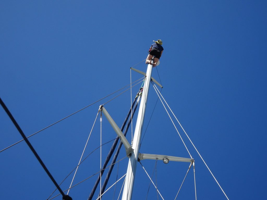 In Yamba kann ich gleich mal meine neuerworbene Kletterstärke einbringen und den Windanzeiger auf der Mastspitze begradigen.
