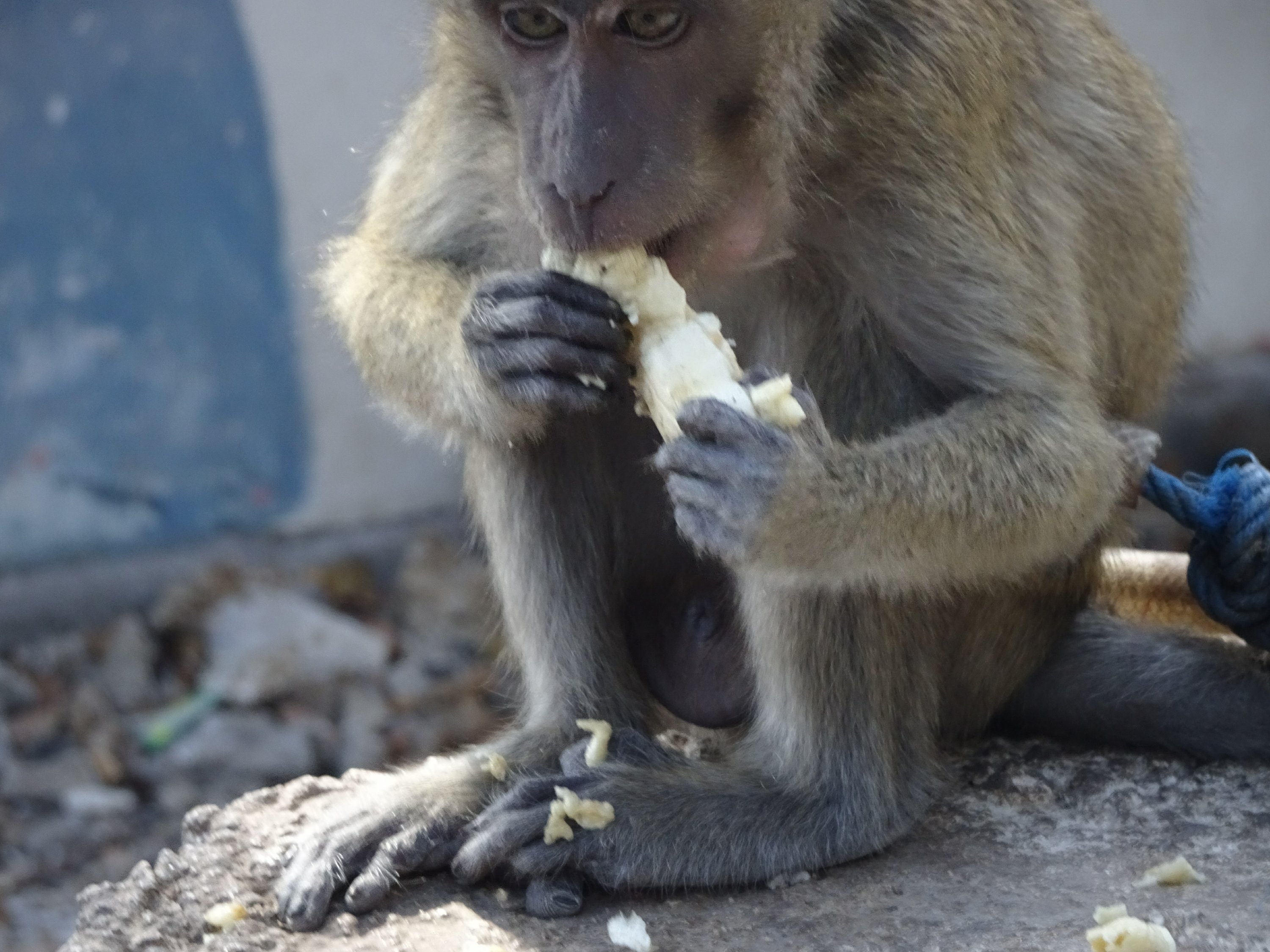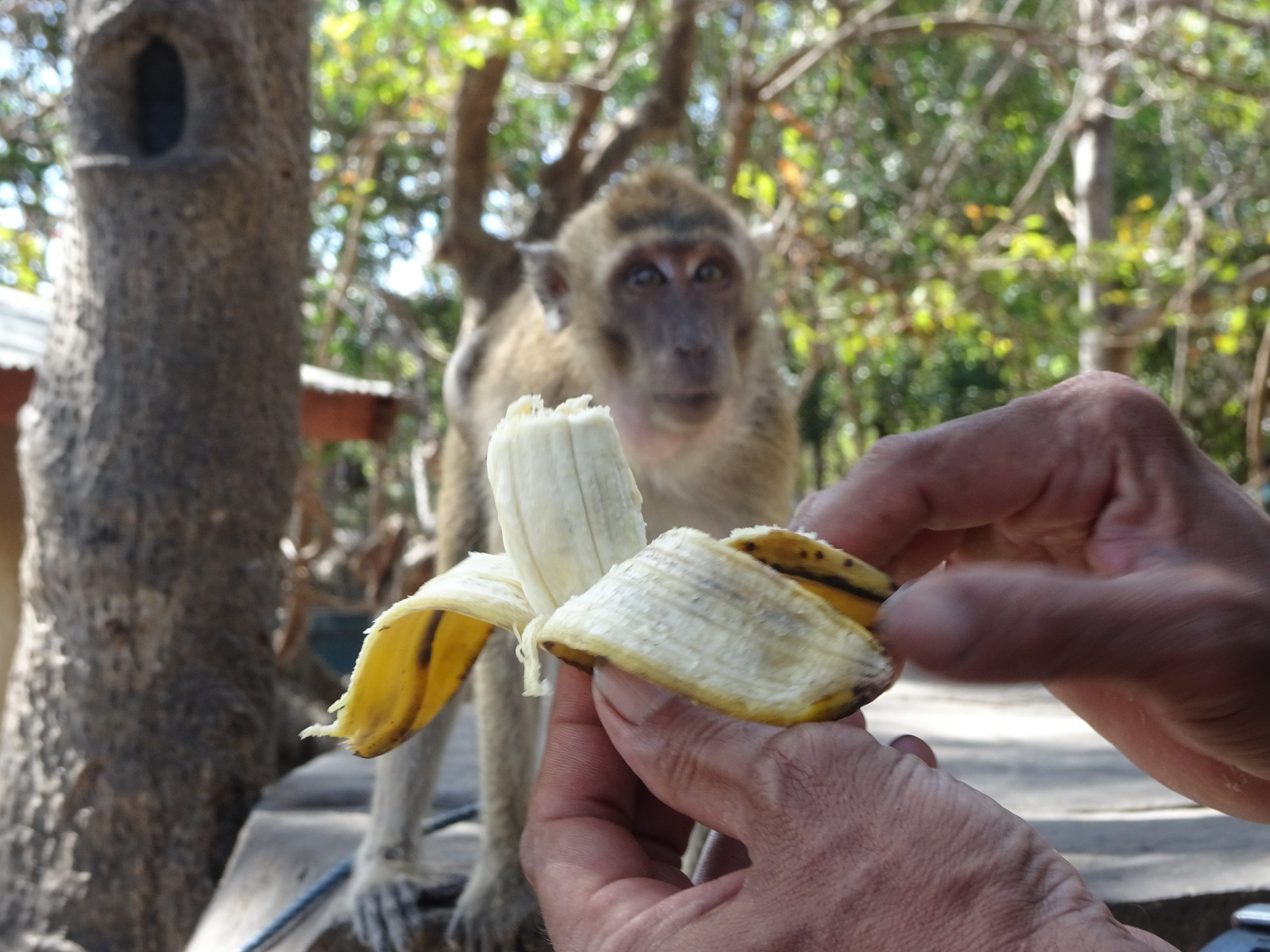 Mit Matthew, unserem „Agenten“ fahren wir an einem Affenwald vorbei und halten an. Auf manchen Inseln gelten die Makaken als heilig.