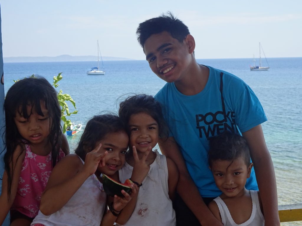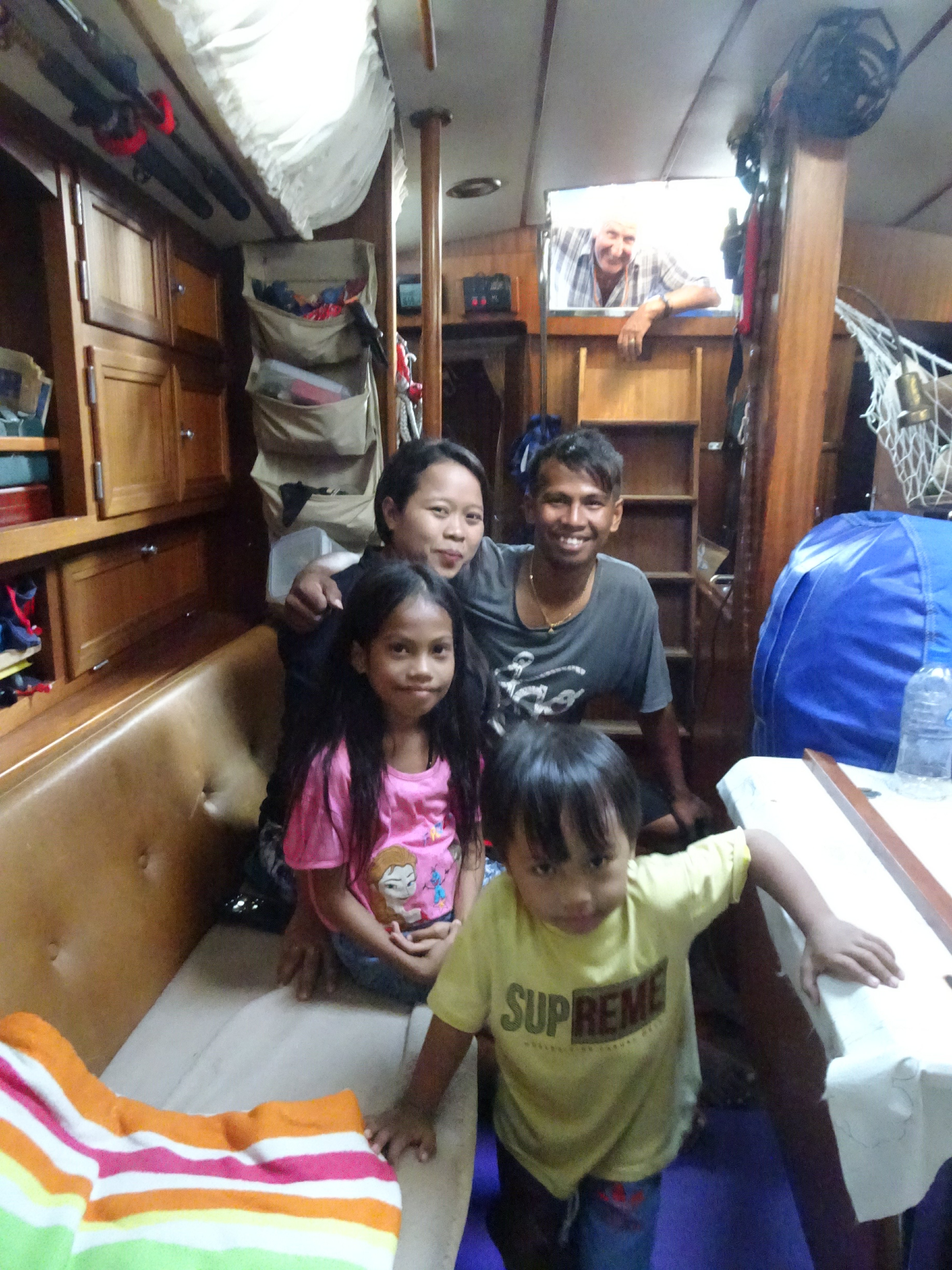 Auch unser Dinghy Wächter kommt vor der Abreise zum Gegenbesuch auf Kama und bringt seine Familie mit.