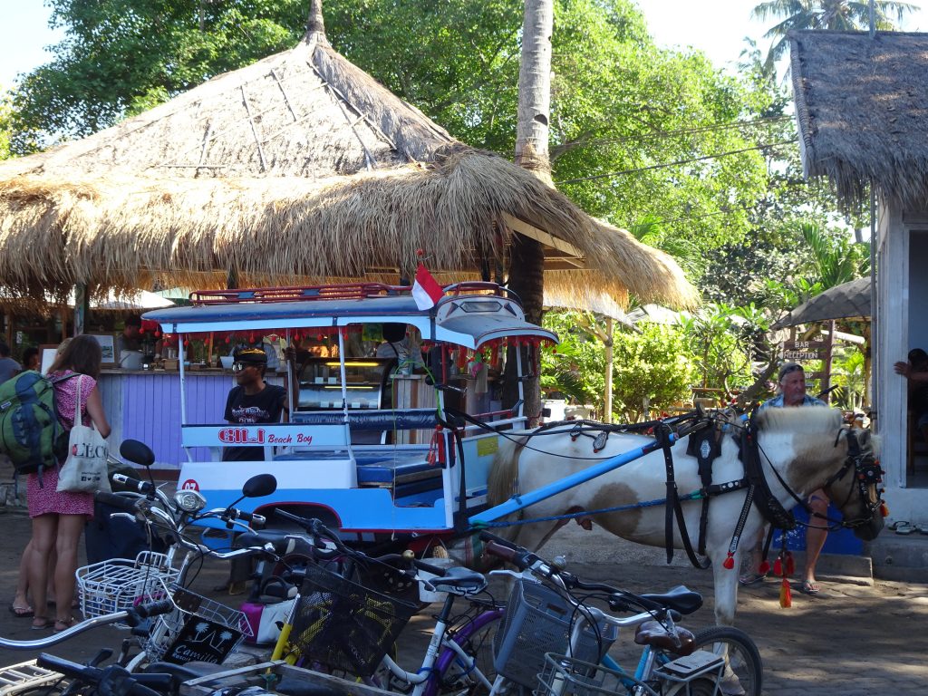 Auf den Gilis sieht man die Einheimischen eigentlich nur als Dienstleister in der Tourismusbranche. Sie geben alles, um die Bedürfnisse der Reisenden zu befriedigen und ich werde das Gefühl nicht los, dass das Indonesien der Gilis ein Fake ist. So ähnlich wie chinesische Restaurants außerhalb Chinas, die Essen verkaufen, das kein Chinese kennt. Versuch mal in Peking eine Pekingente zu finden… Wo sind hier nur die authentischen Dörfer, Architekturen, Mahlzeiten und Beschäftigungen der Indonesier?