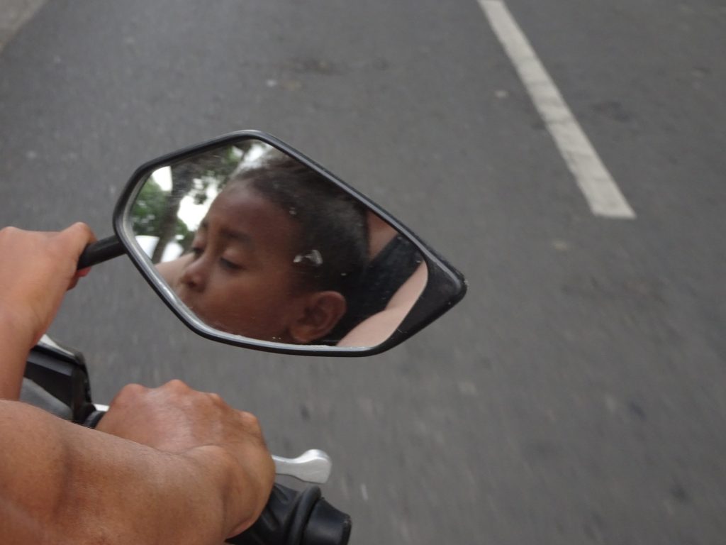 In den nächsten Wochen bestelle ich mir hin und wieder durch Leute, die ich anspreche, über eine Smartphone App eine Mitfahrgelegenheit auf einem Scooter. Die Kinder sind auch oft dabei und sitzen vorne zwischen den Beinen des Fahrers.
