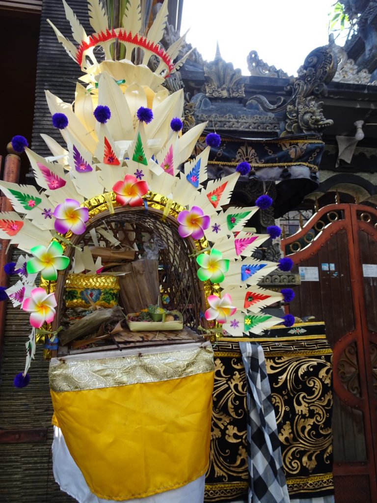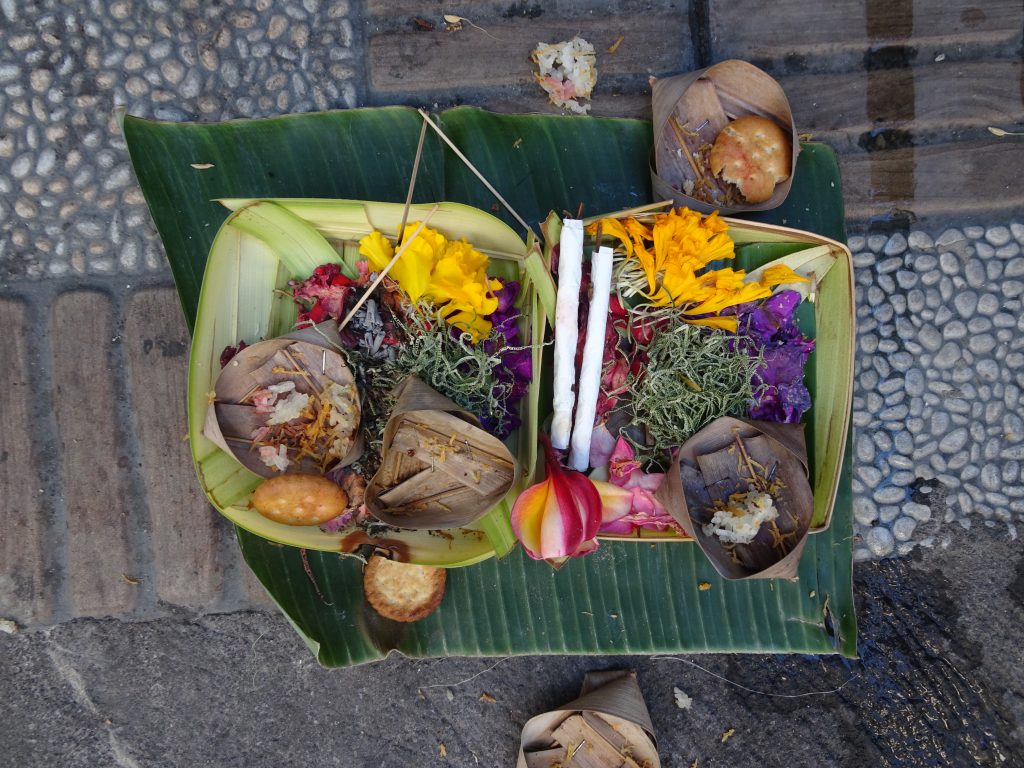Die Menschen schenken den Göttern Kekse, Blumen, eingefärbten Reis, Gewürze und Zigaretten 😀 Alles wird kunstvoll angerichtet.