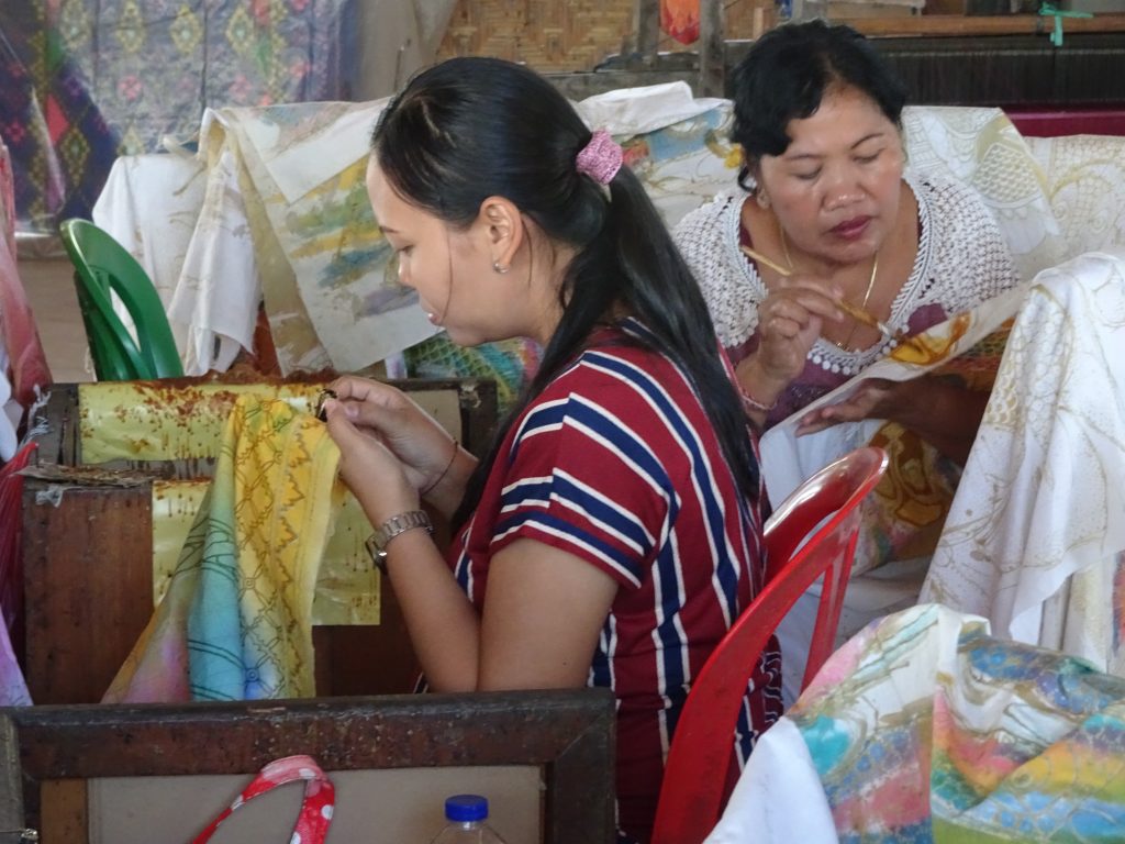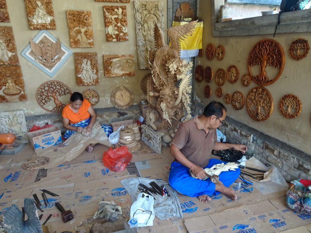 Nochmal eine Abkürzung durch die Reisfelder (die Hauptstraßen sind ein einziger riesiger Stau) und dann gehts noch zur Batikfabrik und den Schnitzern.