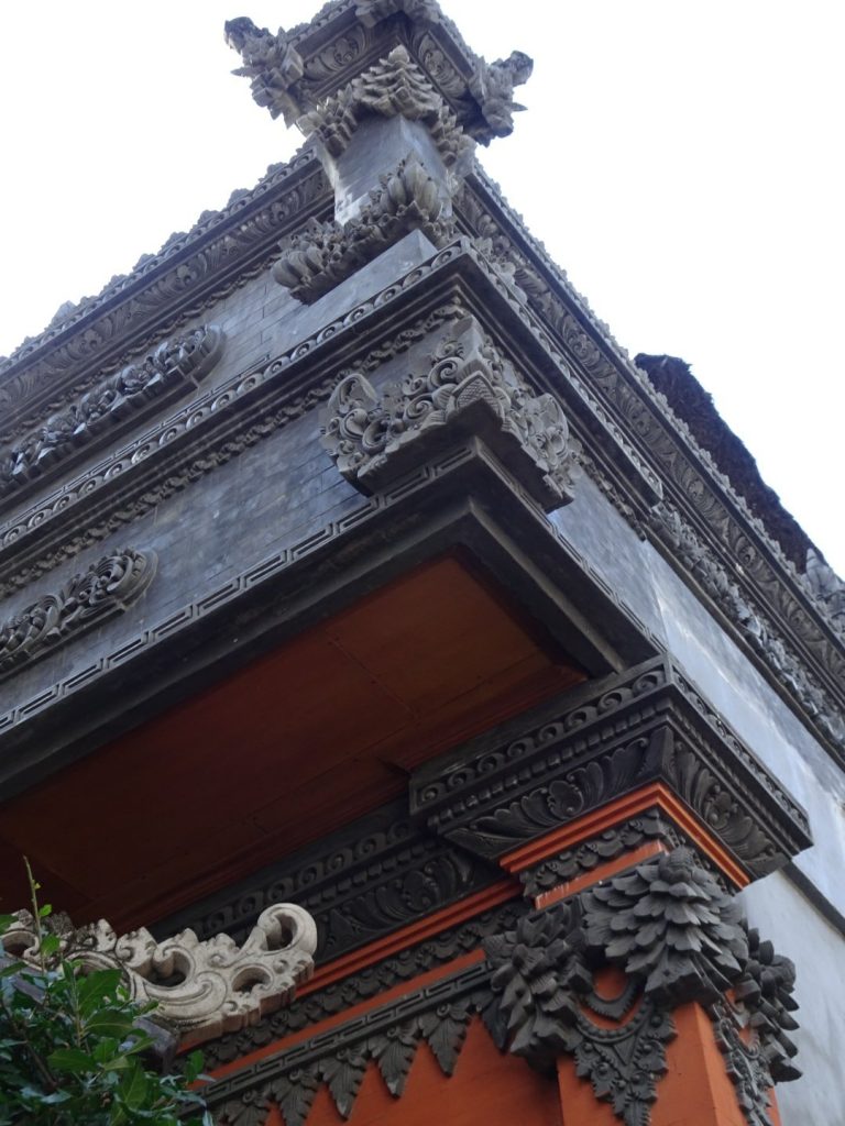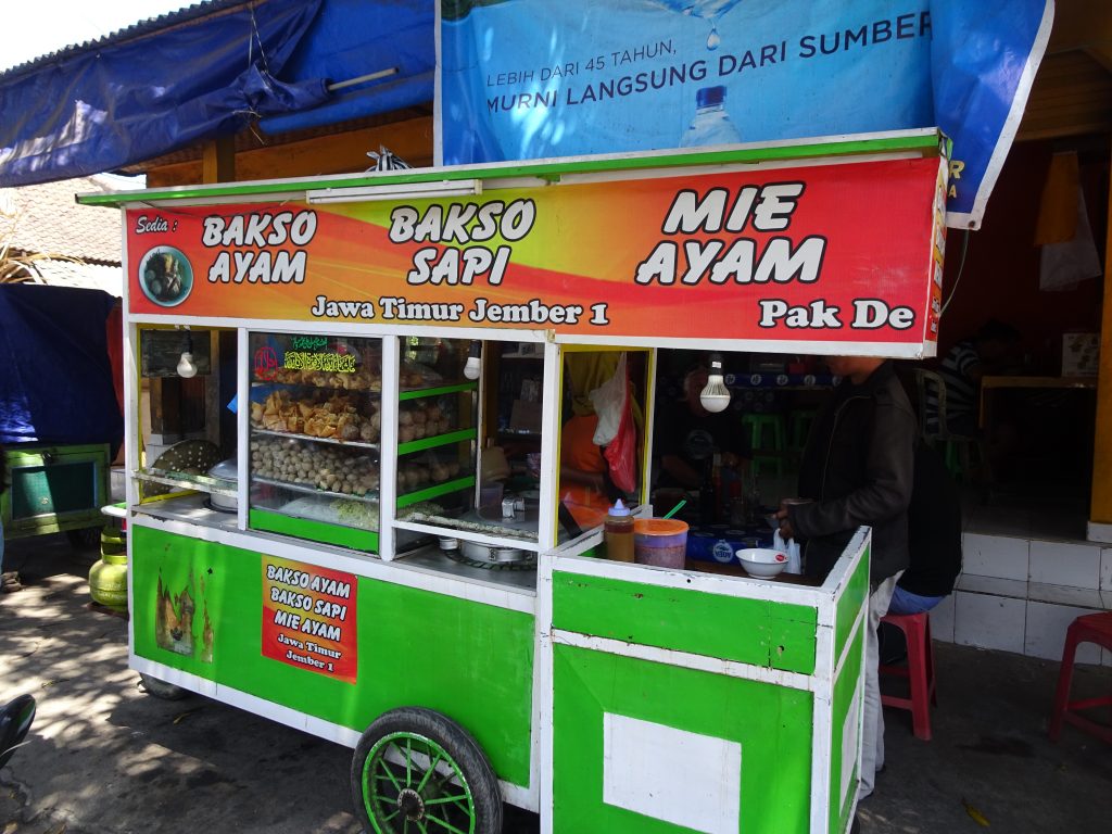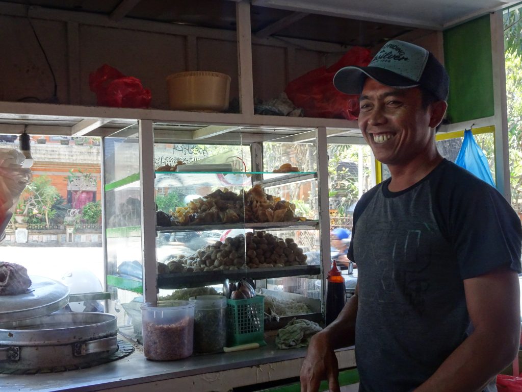 Nach Lombok folgte Bali. Die zwei Inseln liegen gar nicht weit von einander. Bei guten Sichtverhältnissen kann man die majästetischen Vulkane der jeweils anderen Seite sehen. Und dennoch sind die Inseln sehr verschieden. Bali – da kommen sofort Bilder hoch ist nämlich Hinduistisch, Lombok ist muslimisch. Diese wahnsinnig aufwendigen Schnitzereien an den Gebäuden und großartiges Kunsthandwerk, die Opfergaben, die Haustempel. Anders als bei uns ist die Ornamentik selbst bei Profanbauten anzutreffen und mit ihren vielen engen, verschlungenen Gassen, den bunten Farben, den exotischen Gerüchen nach Blumen und Gewürzen sind die balinesischen Ortschaften eine totale Sinnesüberflutung. Eine willkommene Konstante auf bisher allen Inseln ist „Bakso“. Eine einfache, aber sehr schmackhafte Brühe, die auf rollenden Straßenimbissen oder kleinen Kiosken („Warung“ genannt) verkauft wird und selbst nach Wochen noch mein Lieblingsgericht ist.