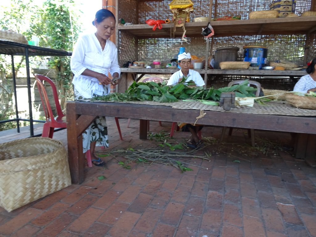 Viele Häuser haben diese kleinen Hausaltare, wo täglich kleine Geschenke an die Götter abgestellt werden. Jeden Tag werden diese kleine Päckchen mit viel Aufwand und Hingabe angefertigt.
